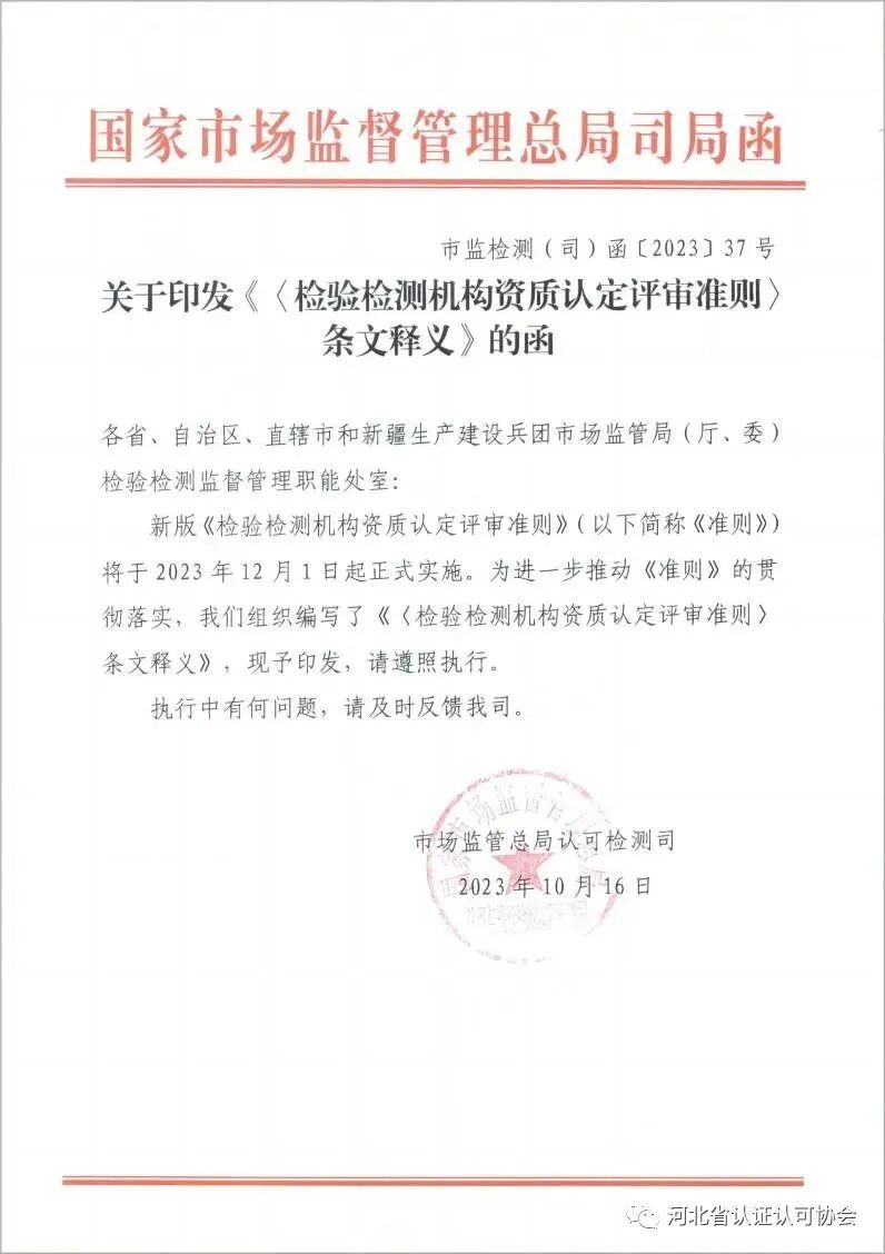 近日,国家市场监管总局发布了关于《检验检测机构资质认定评审准则》的条文释义,详情如下: